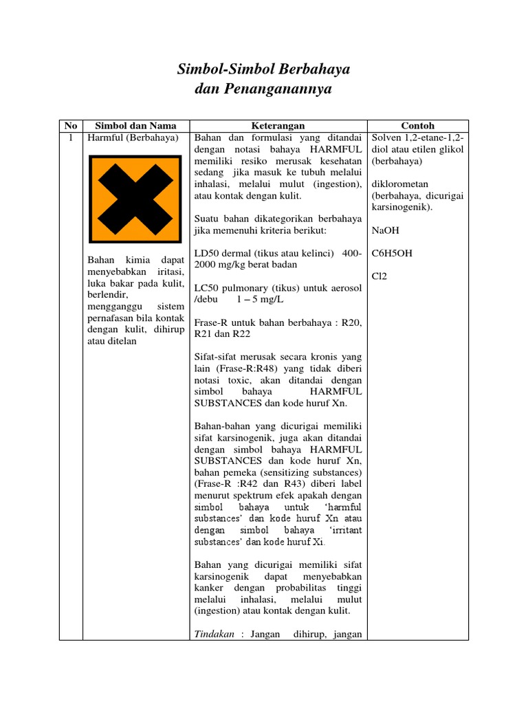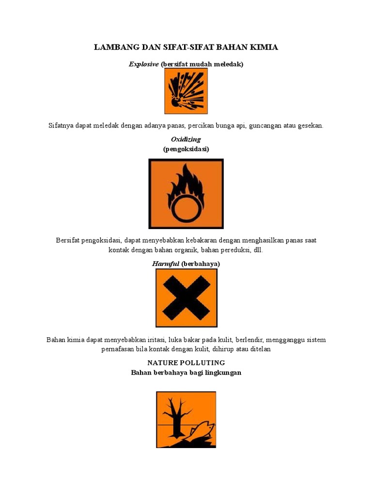 7 Simbol Bahan Kimia Berbahaya from imgv2-2-f.scribdassets.com Artinya bahan ini tidak mudah sifat lainnya yaitu b3 yang berarti bahan berbahaya dan beracun. Limbah ini berbahaya selama penanganannya, baik pada saat pengangkutannya maupun saat pembuangannya. Dalam artikel ini, ada akan melihat sejumlah sifat bahan kimia berbahaya yang menurut peraturan menteri kesehatan. .2001, bahan berbahaya dan beracun didefinisikan sebagai bahan yang karena sifat dan atau karakteristik bahan kimia b3. Simbol ini menunjukkan bahan berbahaya jika terhirup. .pengendalian bahan kimia berbahaya b3, 5 bahan kimia sehari hari yang bisa berbahaya, jangan sekali kali coba menyelupkan diri atau benda kalian ke cairan ini atau tanggung sendiri. R50, r51, r52 dan r53. Limbah mudah meledak ( eksplosive waste).